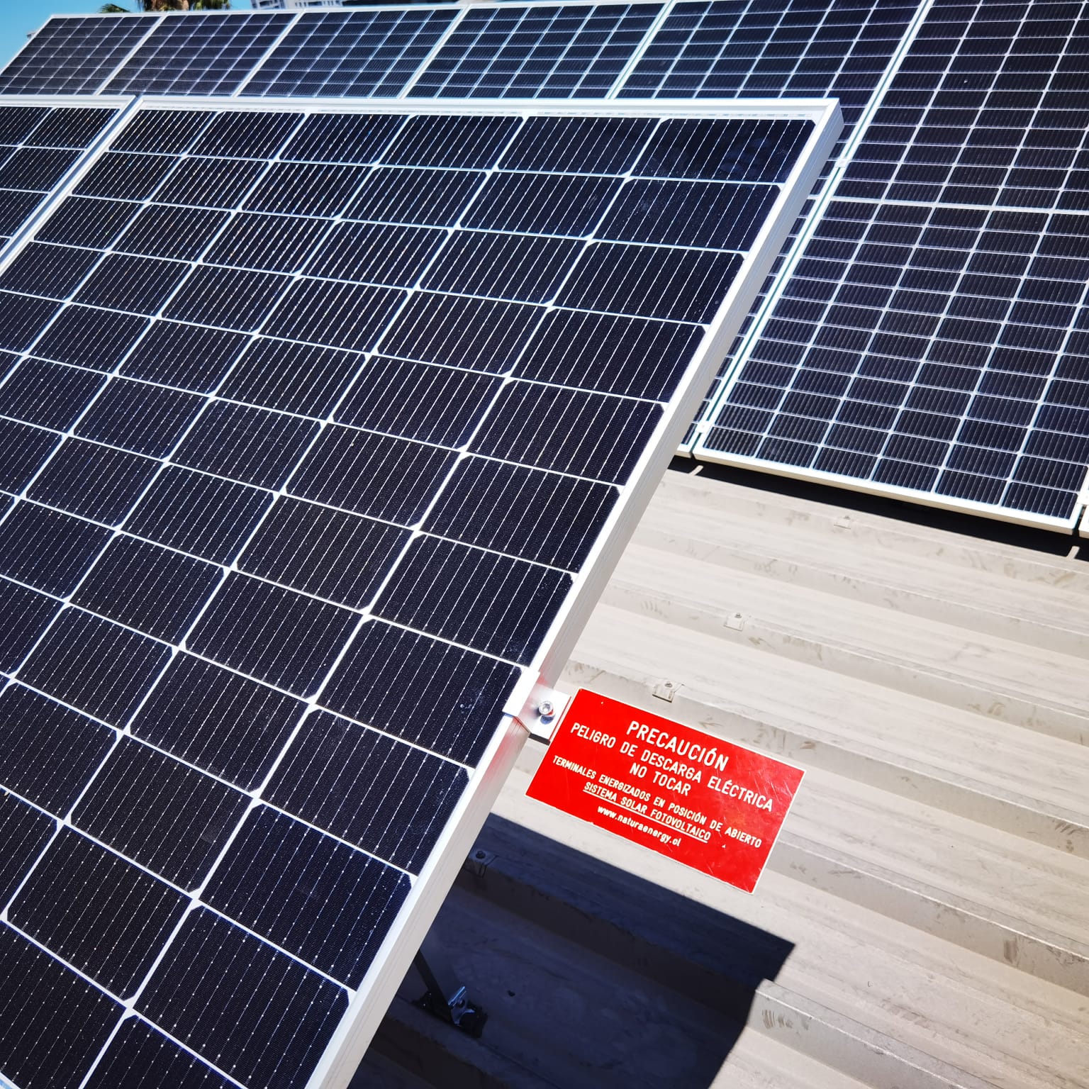 El sistema fotovoltaico cuenta con 26 paneles solares de alta potencia, del fabricante SUNOVA, cada uno con una capacidad de 550Wp, los que suman un total de 14.3 kWp instalados. Esta configuración robusta asegura una generación de energía significativa, aprovechando al máximo la radiación solar disponible en la ubicación de la sucursal.