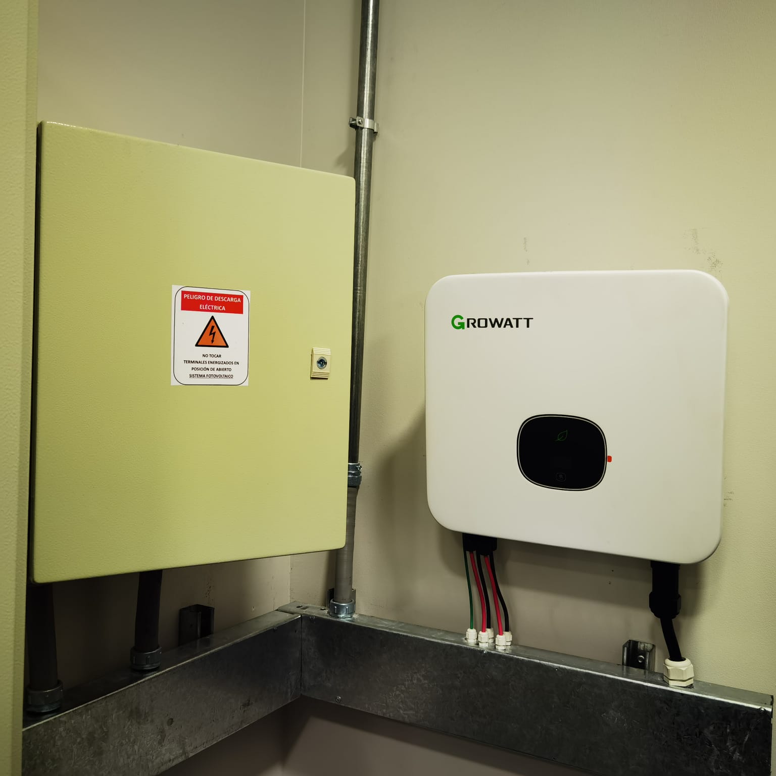 El corazón de esta instalación es un inversor trifásico de la prestigiosa marca Growatt, certificado por la Superintendencia de Electricidad y Combustibles (SEC). Este equipo es fundamental para la transformación de energía desde los paneles solares a la red trifásica, logrando eficiencia y seguridad del sistema, garantizando en todo momento un rendimiento óptimo a lo largo del tiempo.