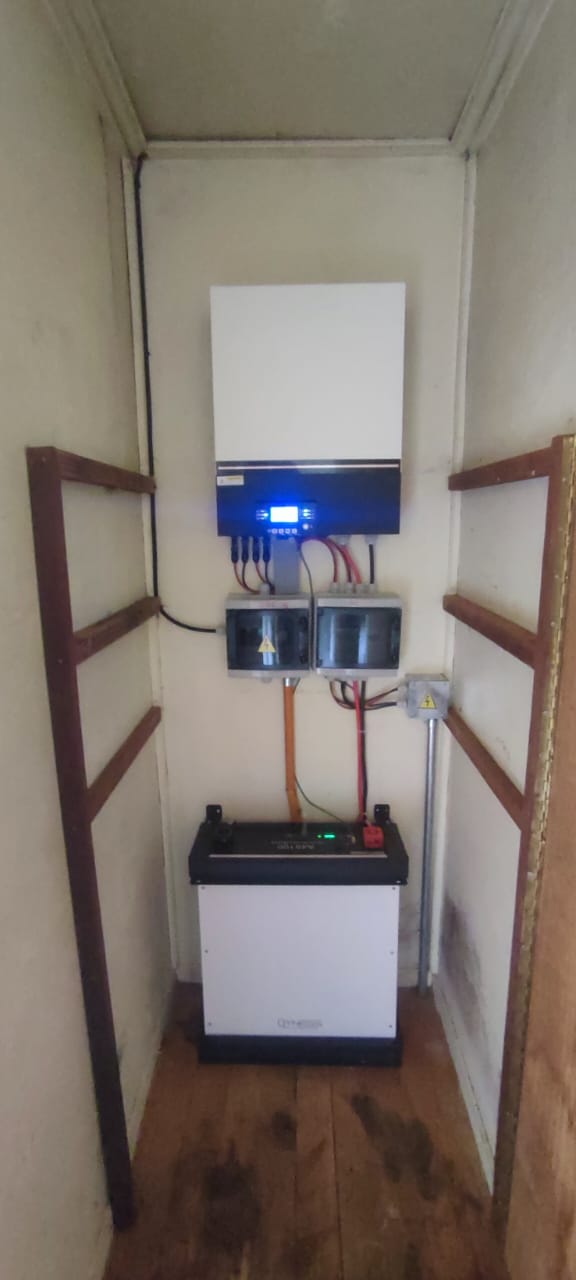 Se trata de un proyecto con tecnología fotovoltaica de punta que considera un banco de baterías de litio con una vida útil mayor a los 10 años y un inversor solar capaz de recibir energía desde un generador eléctrico inverter en caso de poca radiación solar o consumos mayores a su capacidad.