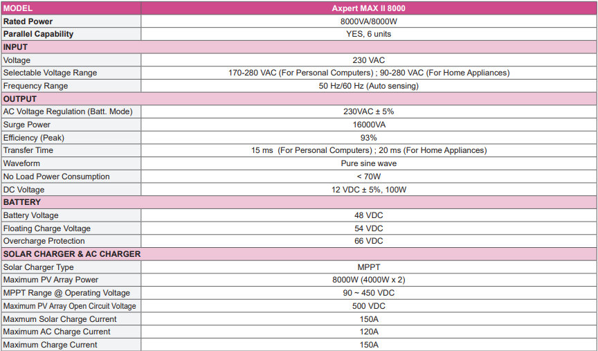 Inversor Cargador Voltronic Axpert MAX II 48V 11kW