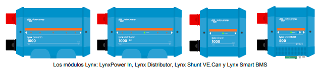 El Lynx Power In tiene una corriente nominal de 1000A, para tensiones del sistema de 12, 24 o 48. La corriente nominal sirve de indicación para saber el tamaño del sistema de inversor/cargador que puede conectado y alimentado desde el banco de baterías a través del Lynx. Tenga en cuenta que si se usan inversores o inversores/cargadores, los sistemas de CA y CC se alimentarán desde las baterías.