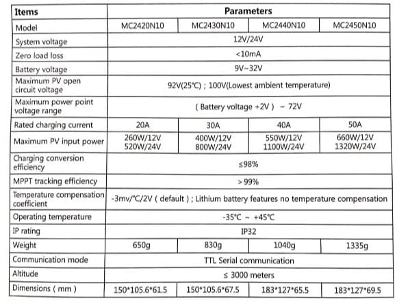 Regulador de Carga Solar MPPT 40A 100V 12/24V