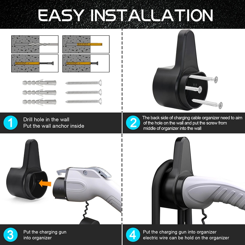 Soporte de pared para cargador o cable de vehículo eléctrico conector tipo 2. Compre en nuestra web y pagué con WebPay o transferencia.